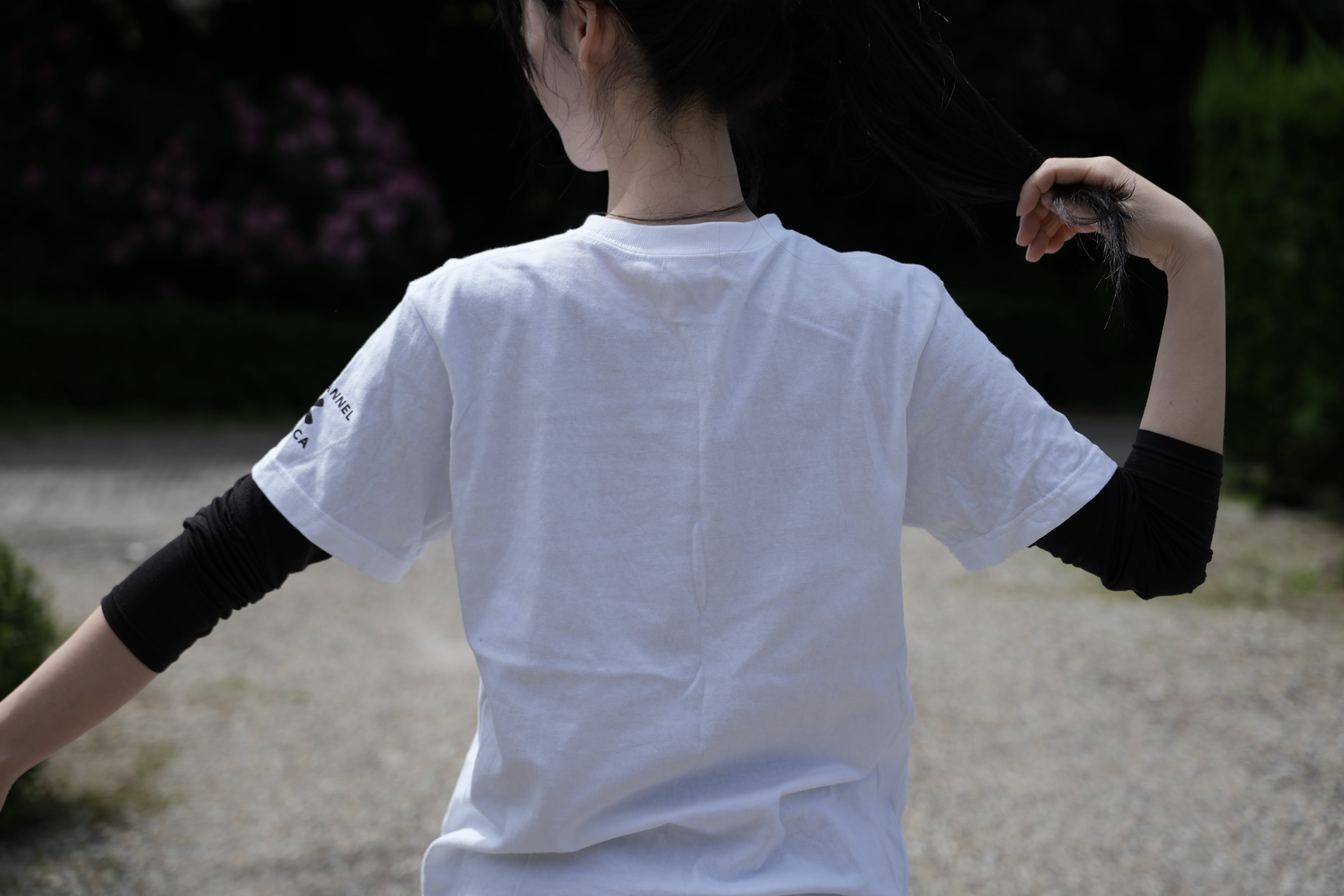今回は、綿のTシャツにブラックプリントでデザインしています。